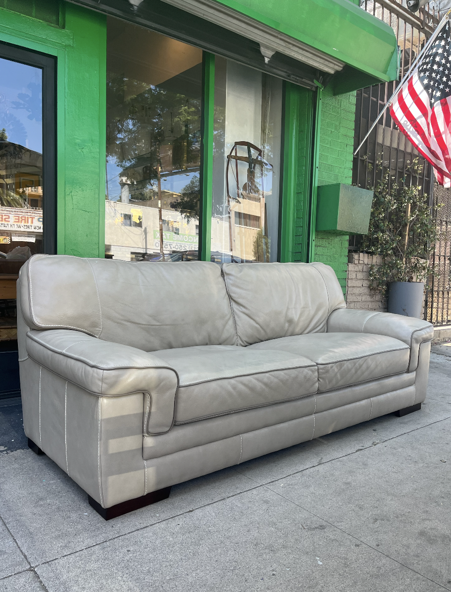 This contemporary style sofa was crafted with full-grain leather.