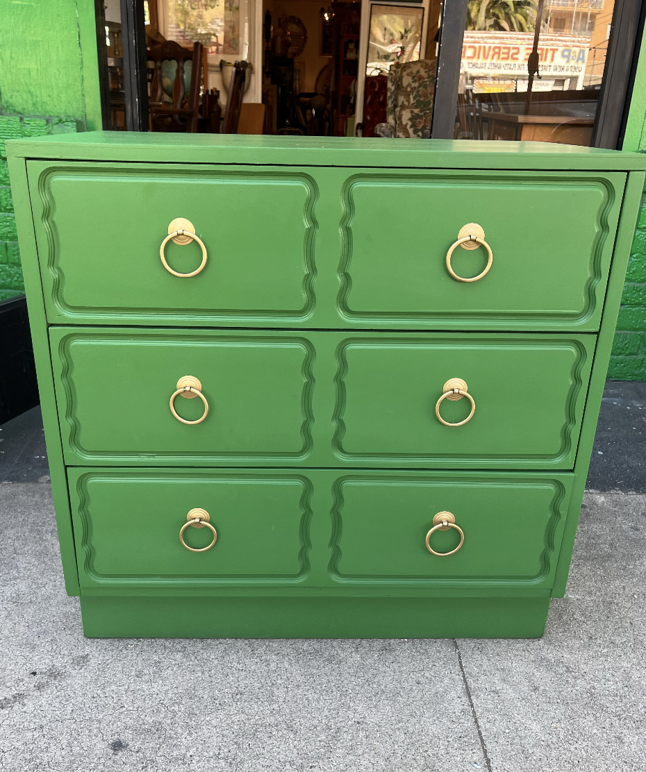 This 1960s Regency dresser is giving Dorothy Draper. Exuberant dresser features three drawers and a Spanish decadence.