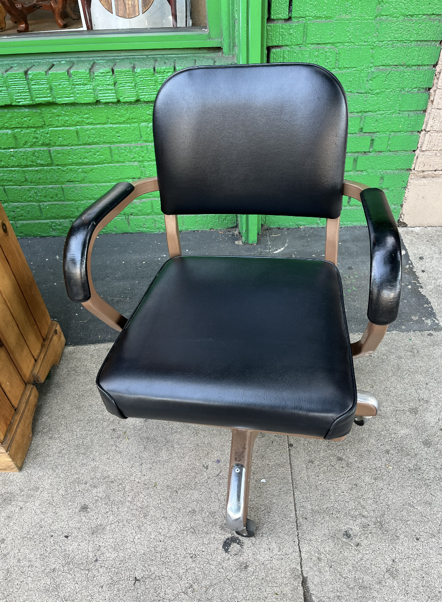 This mid-century tanker desk executive chair features wheels and adjustable back and was made in LA.